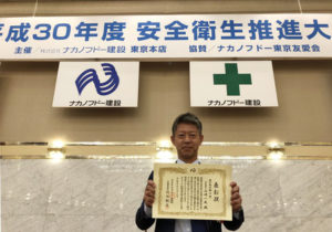 株式会社ナカノフドー建設 東京本店 主催 ナカノフドー東京友愛会 協賛 「平成30年度 安全推進大会(会場 アルカディア市ヶ谷)」において 弊社が、会社表彰を頂きました。